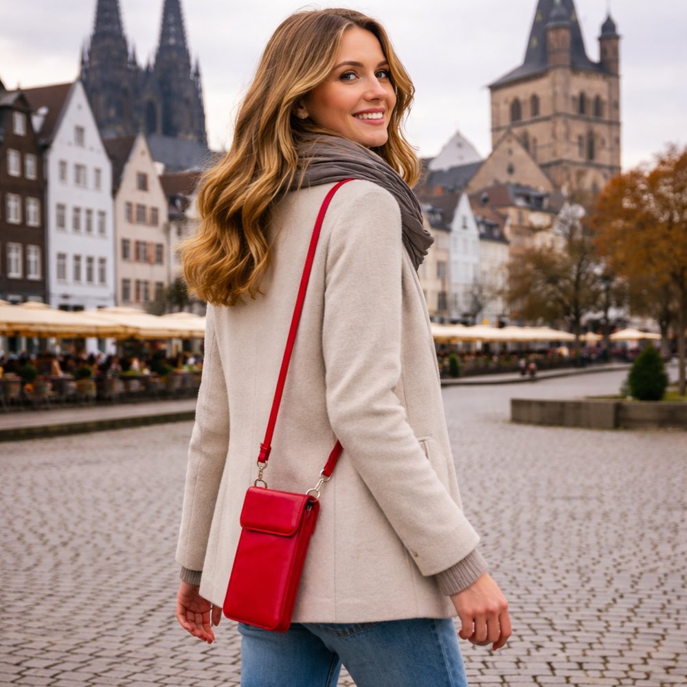 - Eigenschaften:1 verstellbarer, abnehmbarer Riemen mit Schulterpolster - max. Länge ca. 130 cm * PhoneFach mit Klappe * Zipfach mit Einteilung * RV-Fach innen * Kartenfächer
