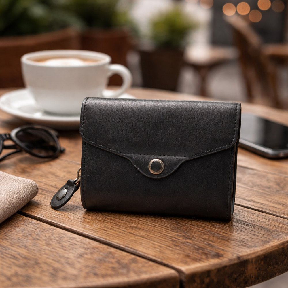 - Eigenschaften: Hauptfach mit Klappe + Druckknopf * Münzfach mit RV * Kartenfächer * Scheinfach * RFID-Schutz * Zipfach auf der Rückseite * Innenklappe * Ausweisfach