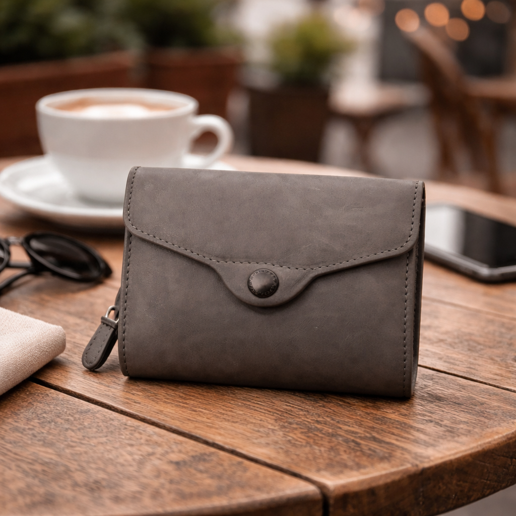 - Eigenschaften: Hauptfach mit Klappe + Druckknopf * Münzfach mit RV * Kartenfächer * Scheinfach * RFID-Schutz * Zipfach auf der Rückseite * Innenklappe * Ausweisfach