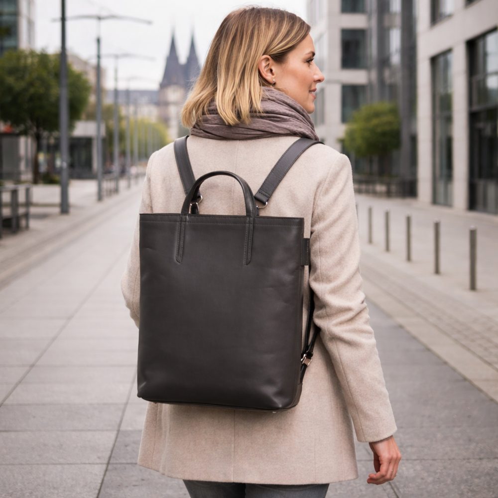 - Eigenschaften: 2 Kurzgriffe * 2 lange, verstellbare Schulterriemen - max. Länge ca. 90 cm * Hauptfach mit Zip * Laptopfach * RV-Fach innen * Mobilfach * Zipfach auf der Rückseite