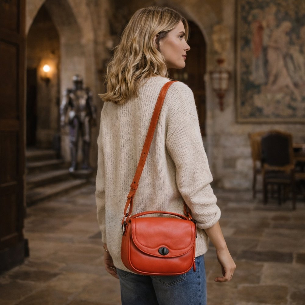- Klappe mit Nahtdetail und nostalgischem Steckverschluss