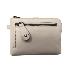 - Das rückseitige Zipfach bietet Platz für Münzen