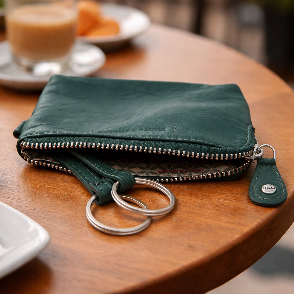 - Hauptfach mit Zip enthält 2 Ringe für Schlüssel + Fächer für Deine wichtigsten Karten