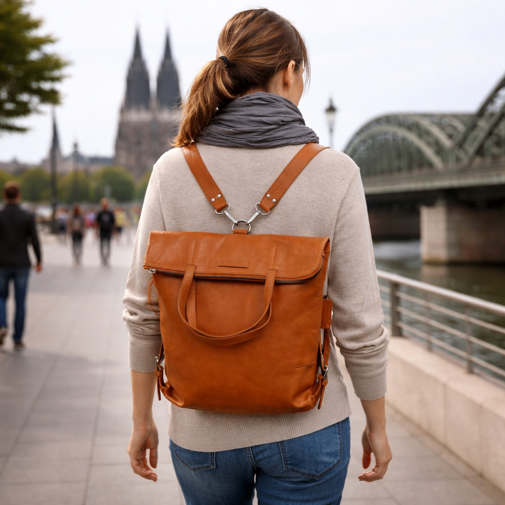 - Dasgetreckte Format ermöglicht das Tragen am Kurzgriff und die Kurzriemensind im Paar als Rucksackfunktion, einzeln als Shoulder Bag nutzbar.