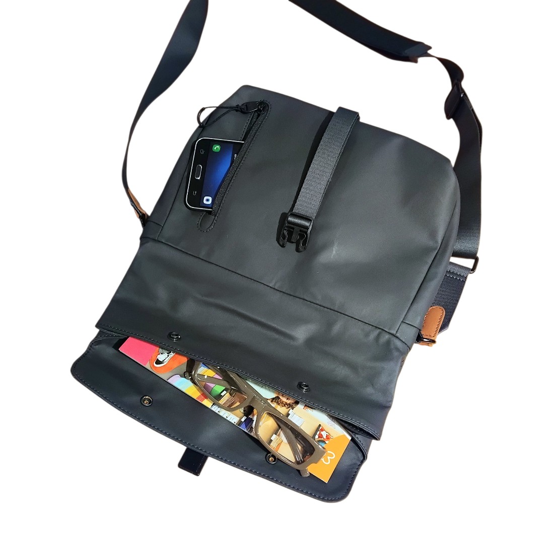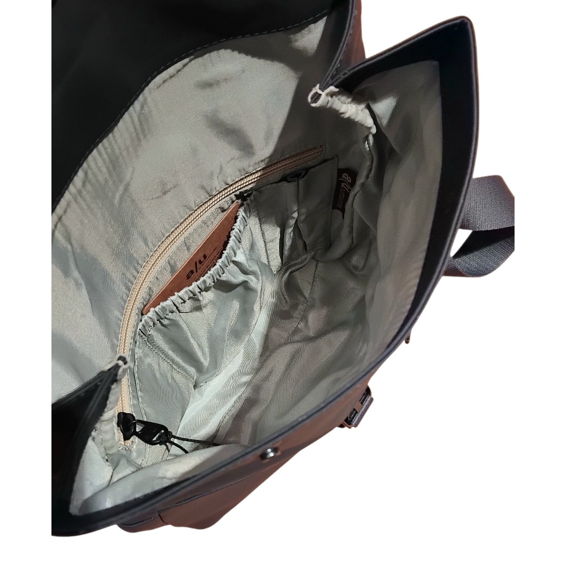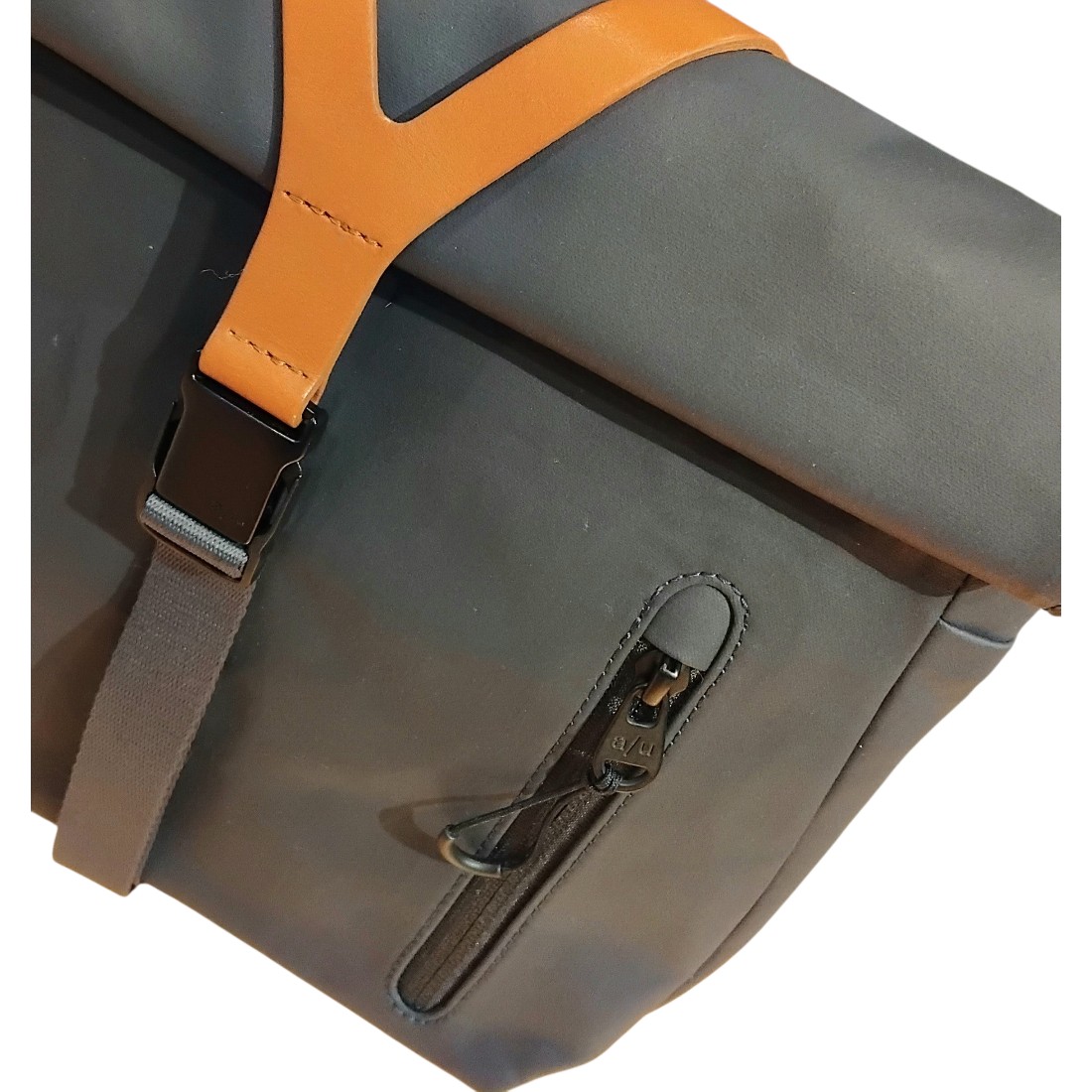 - Hauptfach mit Rolltop + Druckknöpfen
