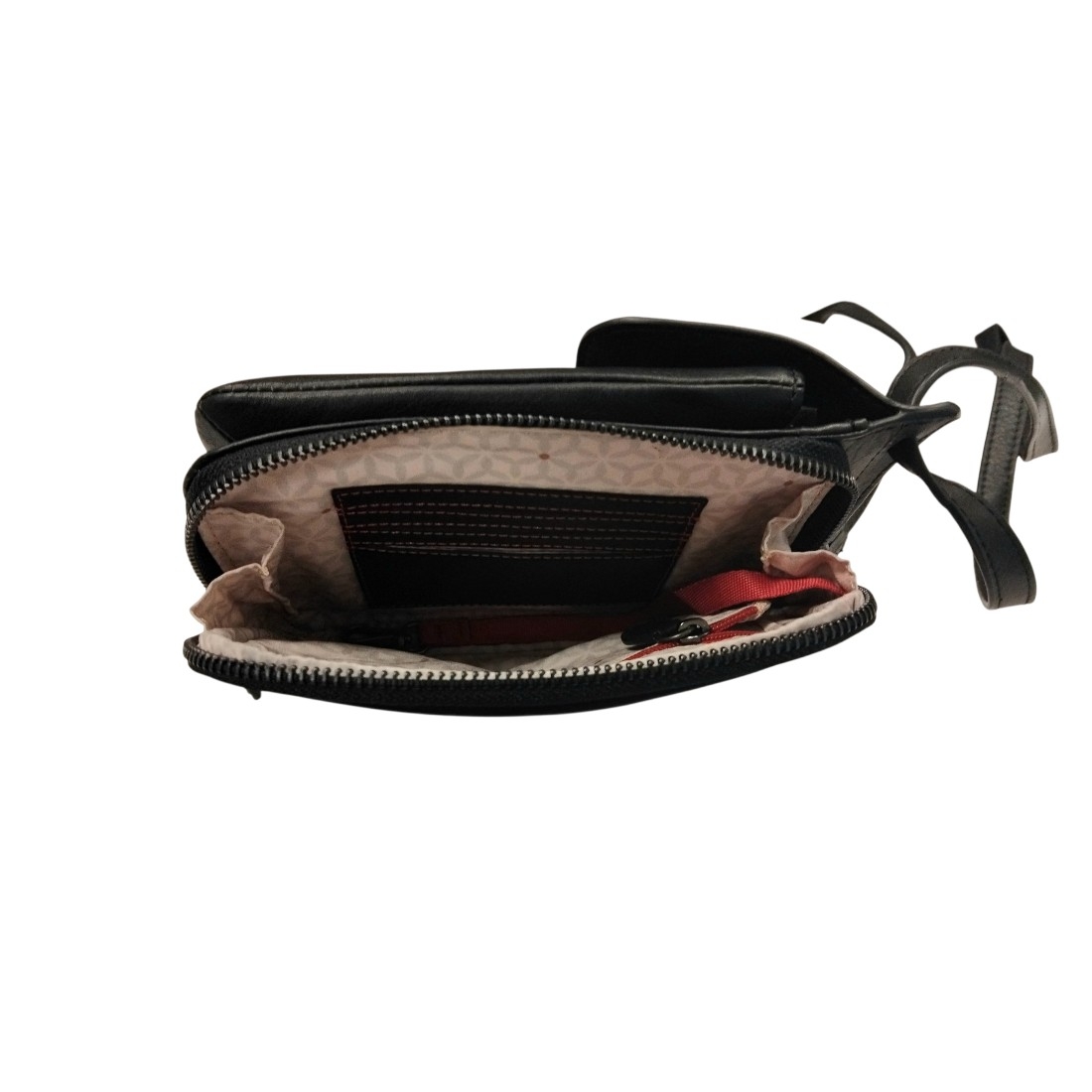 - Eigenschaften: 1 verstellbarer, Schulterriemen - max. Länge ca. 130 cm * Phone Fach mit Klappe + Magnetverschlüssen * weiteres Zipfach mit Organizer-Einteilung * RV-Fach innen * Kartenfächer