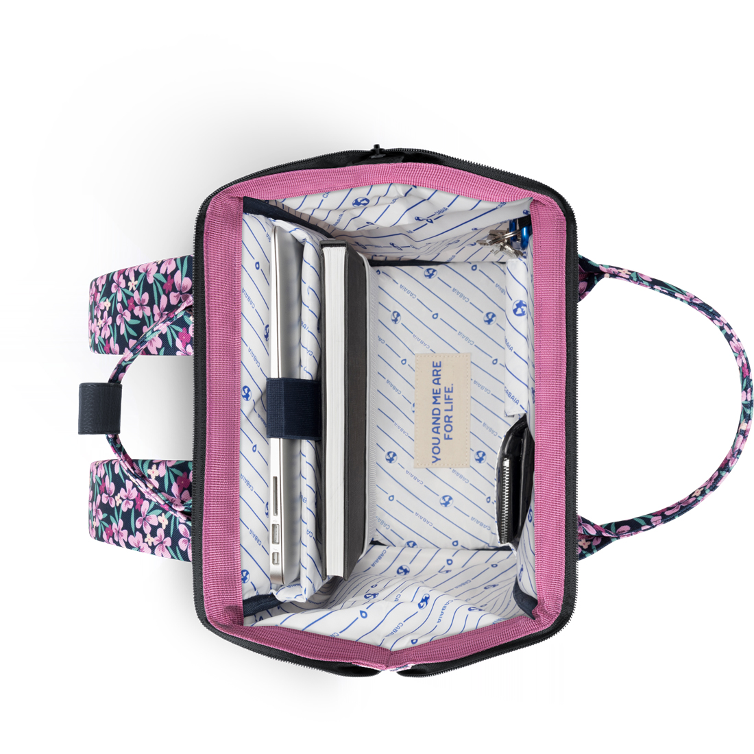 - Innen: 1 Laptopfach mit Klettverschluss * 1 Meshfach * Mobilfach * kleines Steckfach * abnembarer Schlüsselanhänger