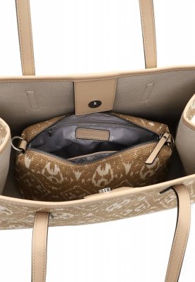 - Sommerliches Flechtdekor, 2 Tone Look und Trimmings aus Kunstleder bestimmen das feminine Design der stylischen Day Bag von Emily & Noah. Von aussen schon ein echtes Highlight, nimmt der raffinierte 2in1 Effekt im Komfort richtig Fahrt auf.