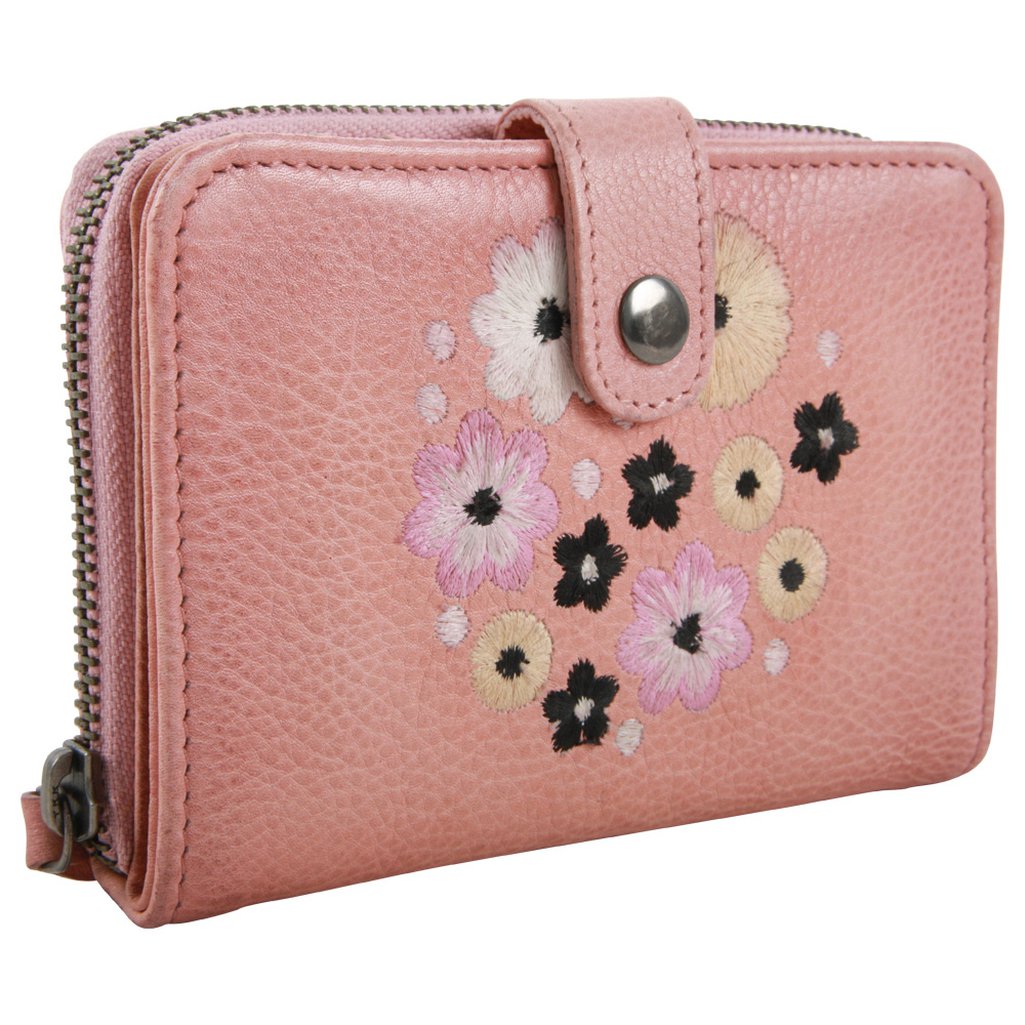 - Das griffige Leder mit genarbter Struktur bekommt durch süße Blumenstickerei eine weiche Note und verspielten Touch. Aber im Inneren geht es natürlich ernst und souverän zu. Denn hier organisieren zahlreiche Fächer Deine Finanzen.