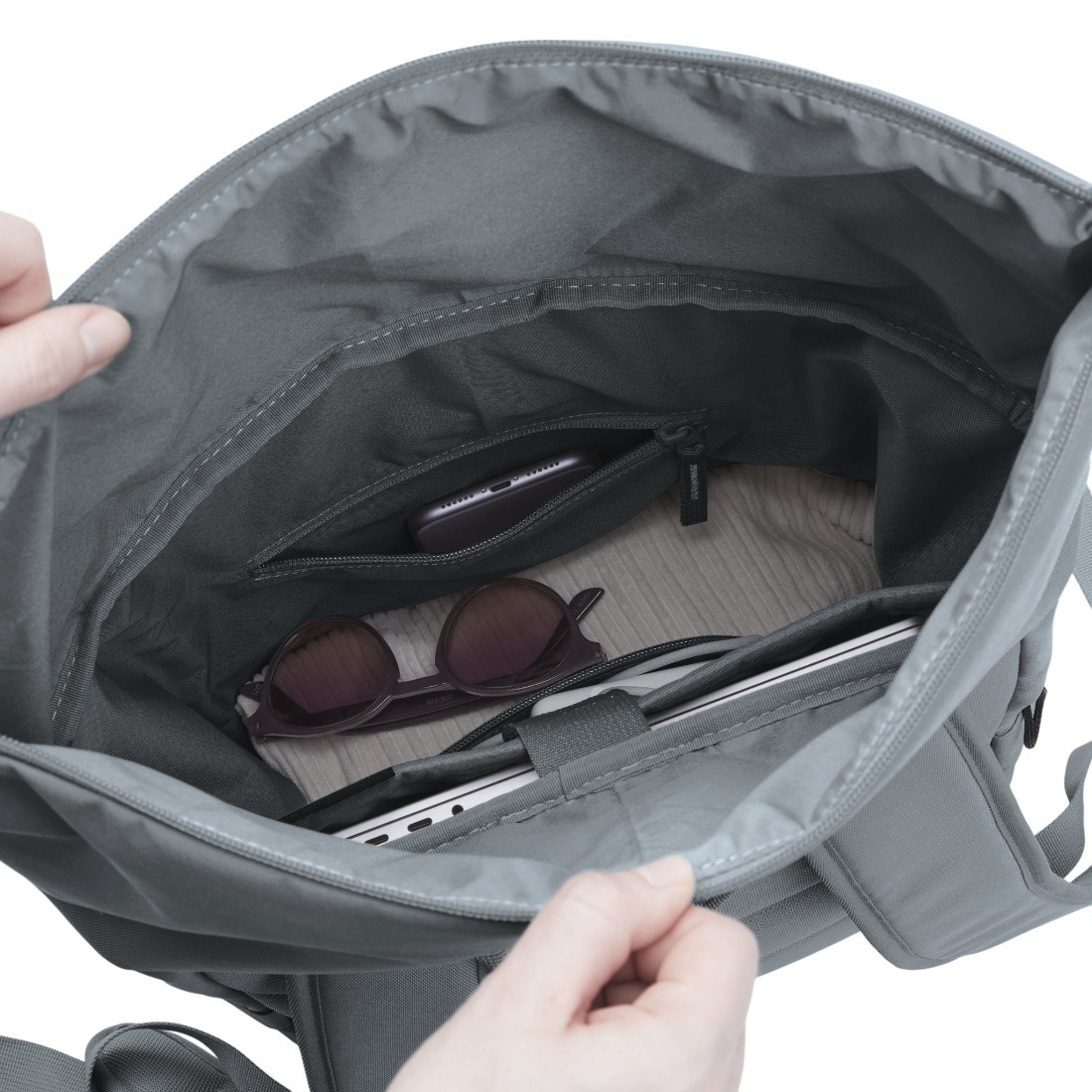 - Hauptfach mit flexiblem Rolltopverschluss + Zip