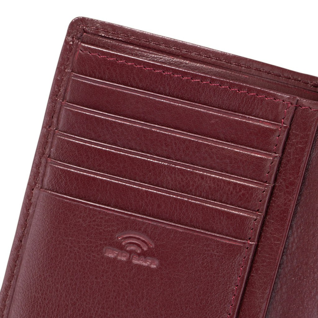 - Eigenschaften: Hauptfach mit Klappe und Druckknopf * großes Münzfach mit RV * 2 Scheinfächer * Kartenfächer * große Steckfächer RFID-Safe