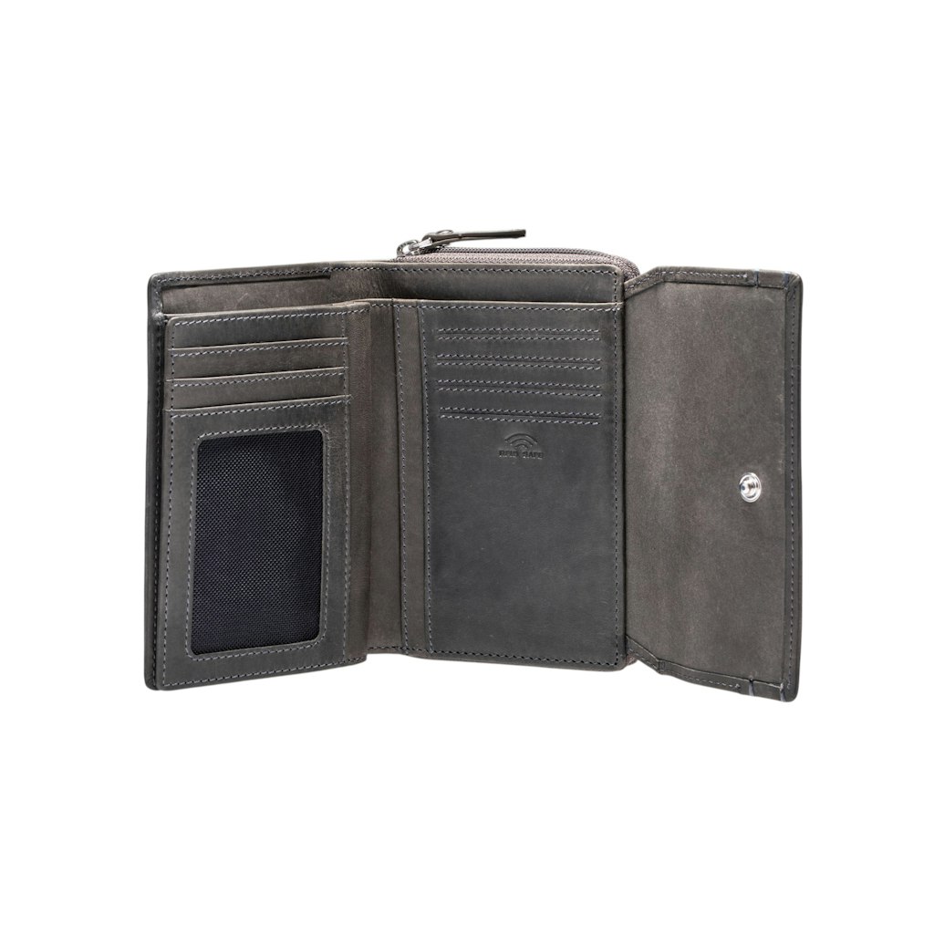 - KlassischeDamenbörse mit modernem Innenleben und Safety-Komfort. Das pure Design lässt dem Materialseine natürlichen Facetten und eine schnörkellose Wirkung.