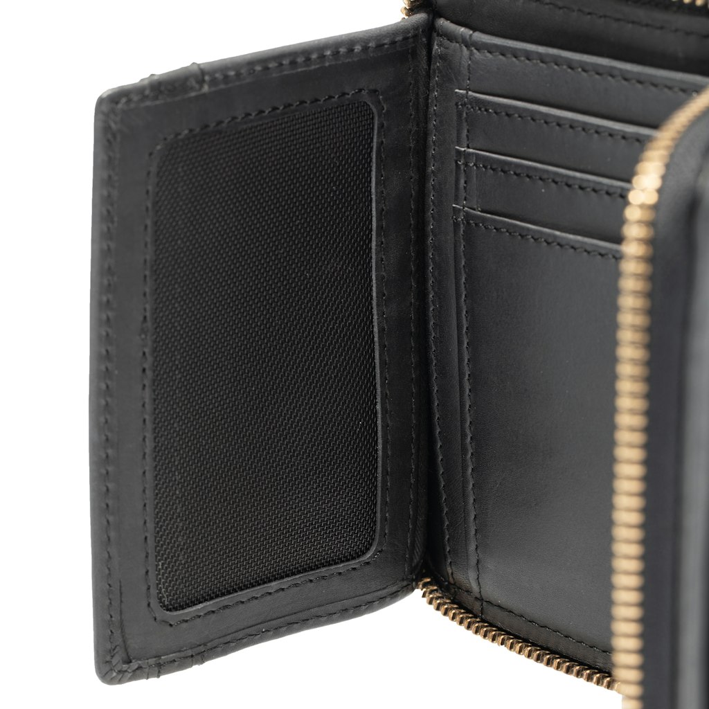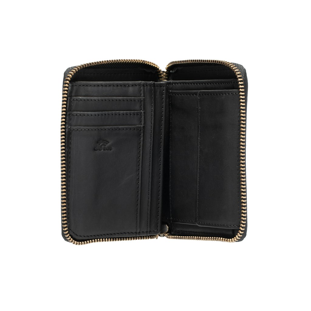 - Eigenschaften: Hauptfach mit umlaufendem Zip * 2 Scheinfächer * Münzfach mit Klappe + Druckknopf * Kartenfächer * Ausweisfach * Steckfach