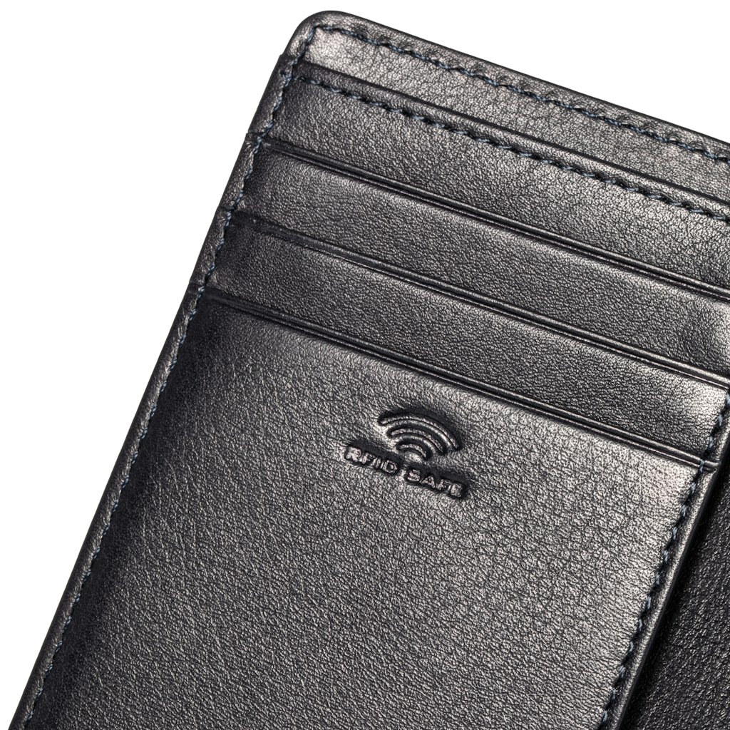 - Eigenschaften: Hauptfach mit Klappe und Druckknopf * großes Münzfach mit RV * 2 Scheinfächer * Kartenfächer * große Steckfächer RFID-Safe
