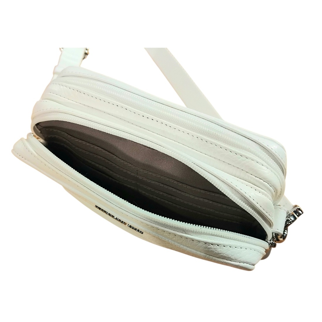 - Das feine Leder präsentiert sich mit linearer Narbung und stilisiertem shape mit Box-Silhouette. Minimalistischer Style in leuchtendem Weiss ist ein edler Eyecatcher für summer + more.