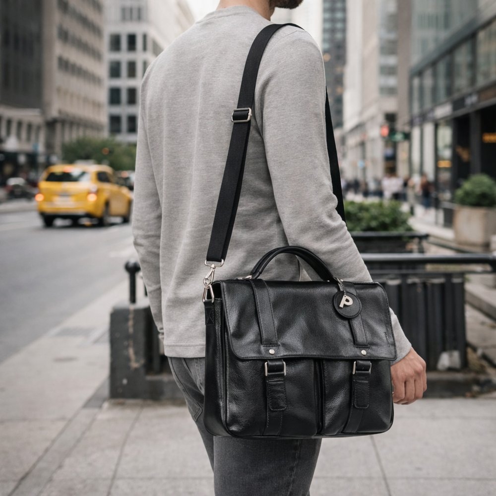 - Große Aktentasche mit 2 Fächern aus Wasserbüffel-Leder