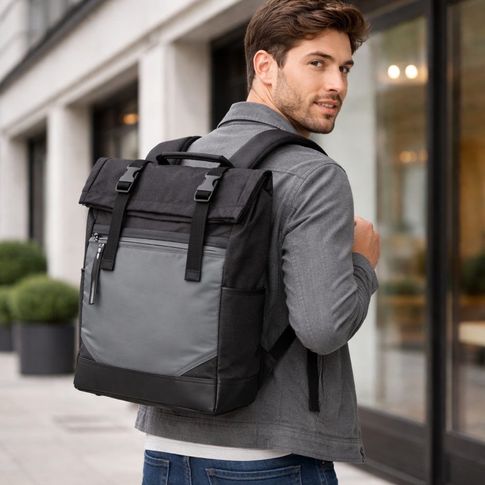 - Im Fokus steht hier ein 3-facher Materialmix aus Canvas-, Nylon und Lederimitat. Entspannt ist nicht nur der Look, sondern auch die zahlreichen Funktionen, die für beste Organisation sorgen.