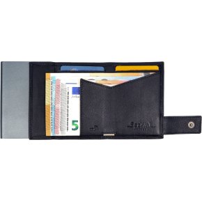 - Eigenschaften: Hauptfach mit Druckknopfriegel * 1 Cardslide für bis zu 6 Karten * 2 Steckfächer * 1 Scheinfach * Münzfach mit Klappe auf der Rückseite