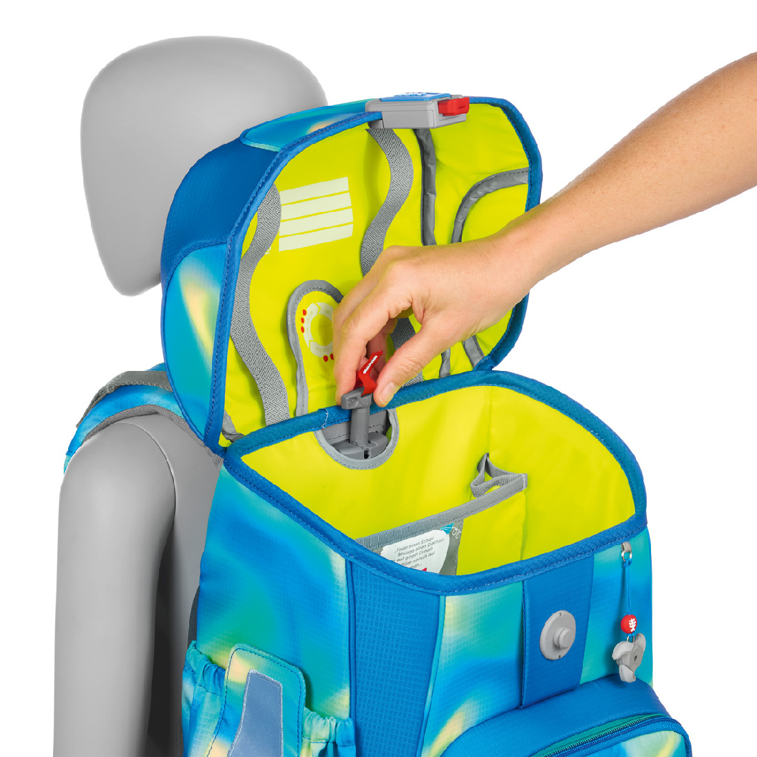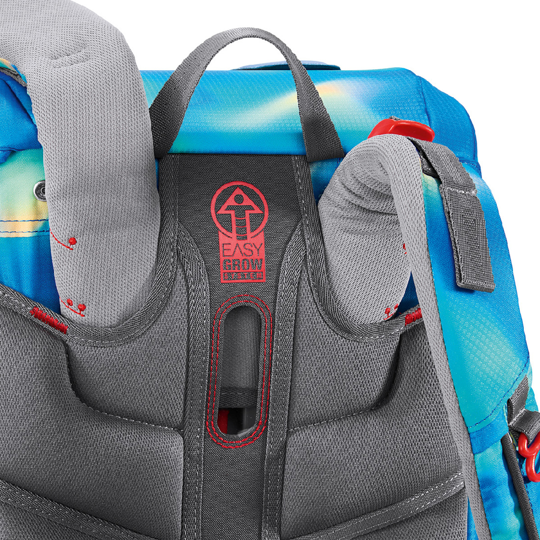 - Noch nie war das justieren der Höhe beim Schulranzen so einfach. Dank dem Easy Grow System wird der CLOUD direkt am Kinderrücken stufenlos und komfortabel verstellt.