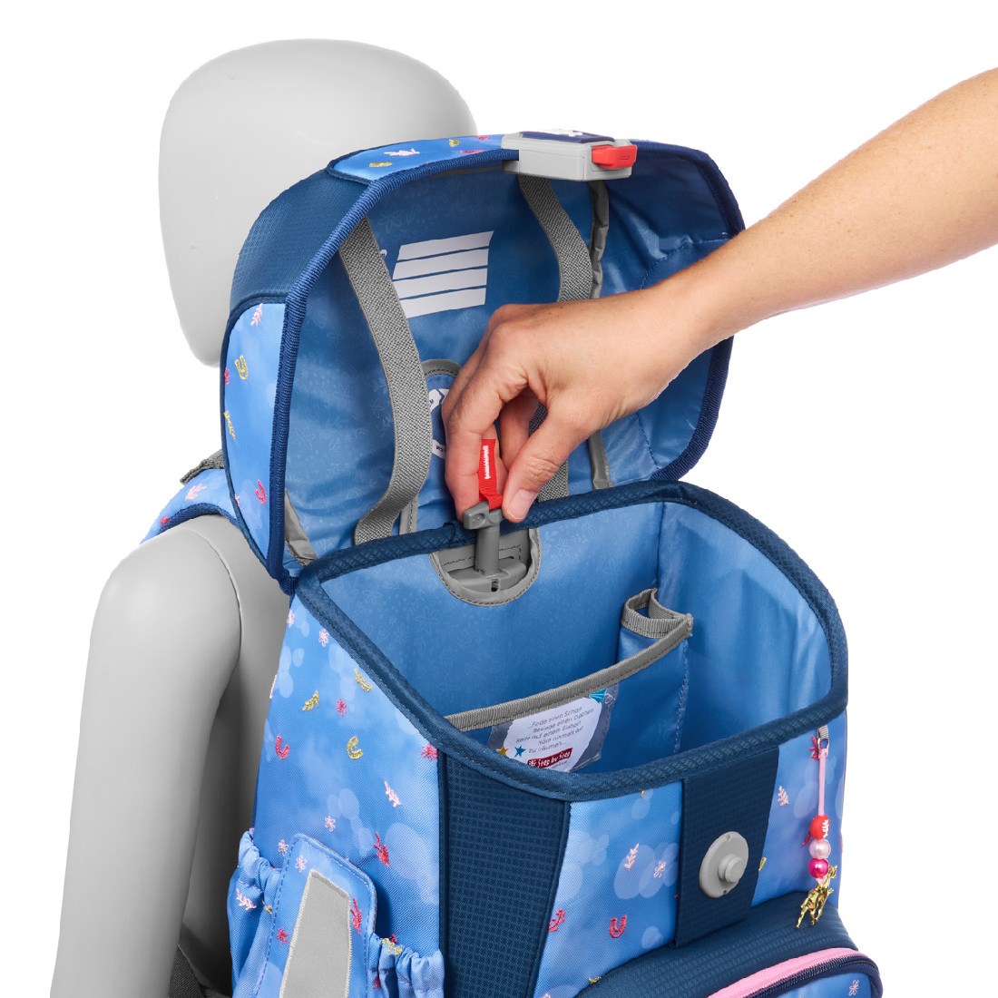 - Noch nie war das justieren der Höhe beim Schulranzen so einfach. Dank dem Easy Grow System wird der CLOUD direkt am Kinderrücken stufenlos und komfortabel verstellt.
