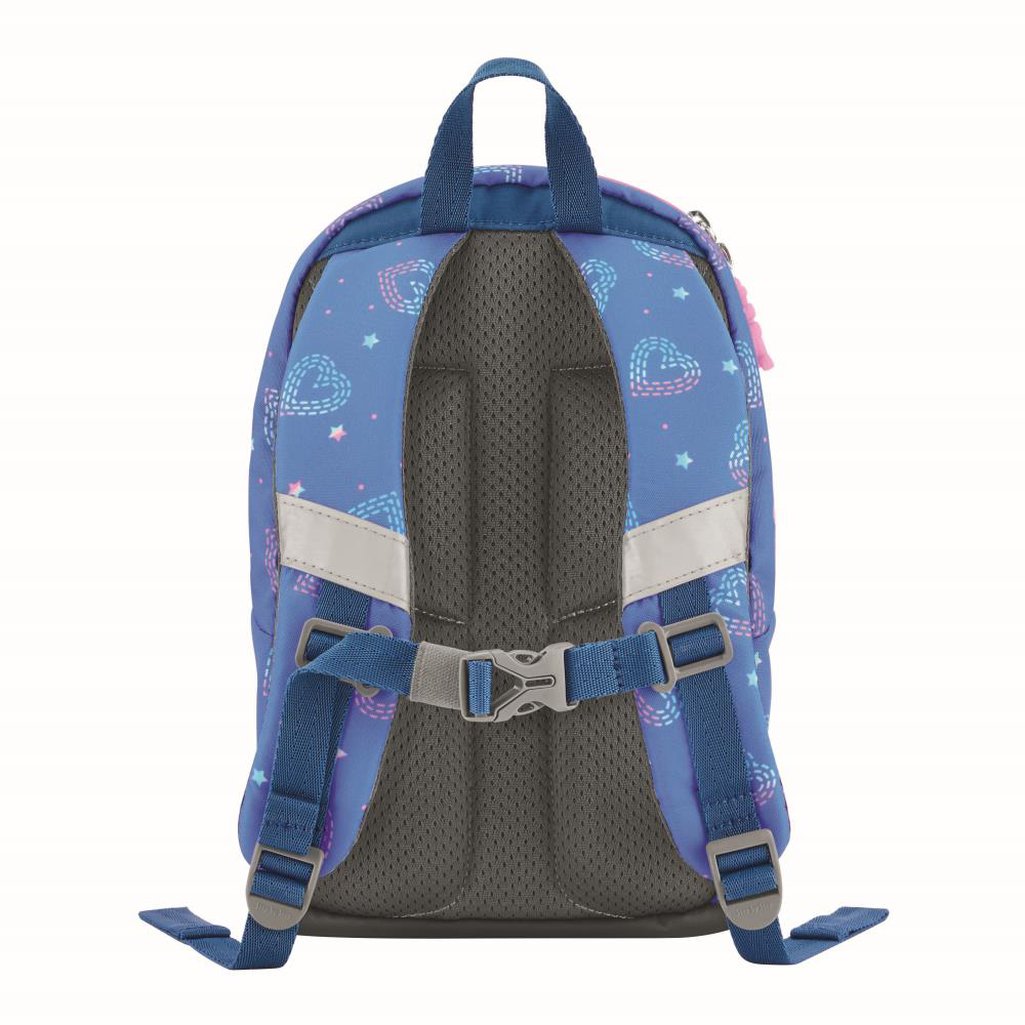 - Eigenschaften: 2 verstellbare, gepolsterte Tragegurte * großes Hauptfach mit Zip * Frontfach * elastisches Steckfach innen * austauschbares Motiv * Namensschild * Reflektoren * höhenverstellbarer Brustgurt