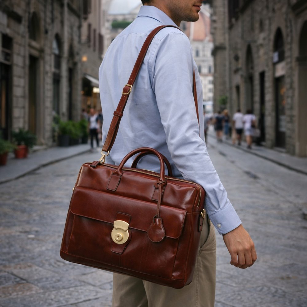 - Elegant, exklusiv und klar fokussiert auf das traumhafte Material geniessen Sie luxuriöses Ledervergnügen. Raffiniert wird hier der weiche Schnitt mit einem markantem Vorfach versehen. Die Rundgriffe geben eine sportive Vintage-Note und unterstreichen das innovative Unisex-Design.