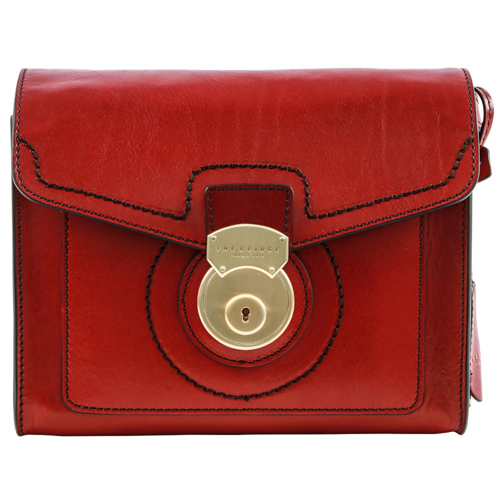 - Das Design dieses kleinen Meisterwerks von The Bridge wird bestimmt durch eine kantige Retro-Form. Die kreisrunden Ziernähte und das markante Messing-Schloss sorgen für eine prunkvolle Ergänzung.