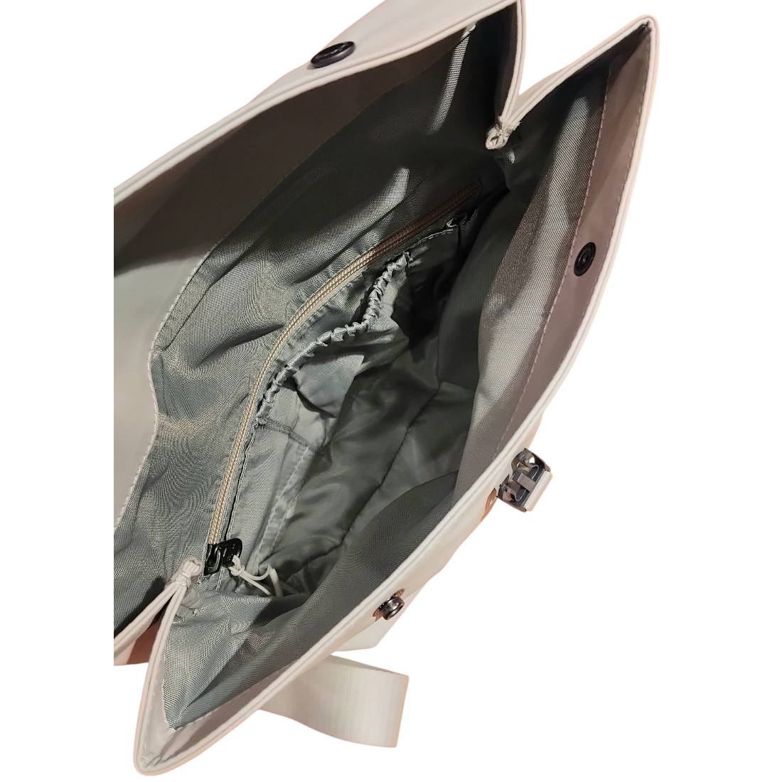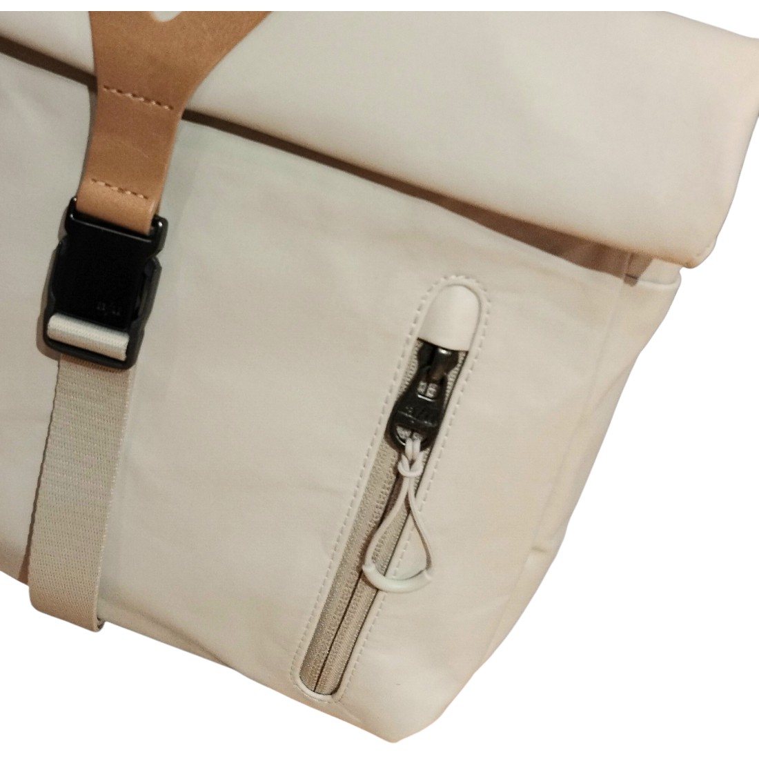- Hauptfach mit Rolltop + Druckknöpfen